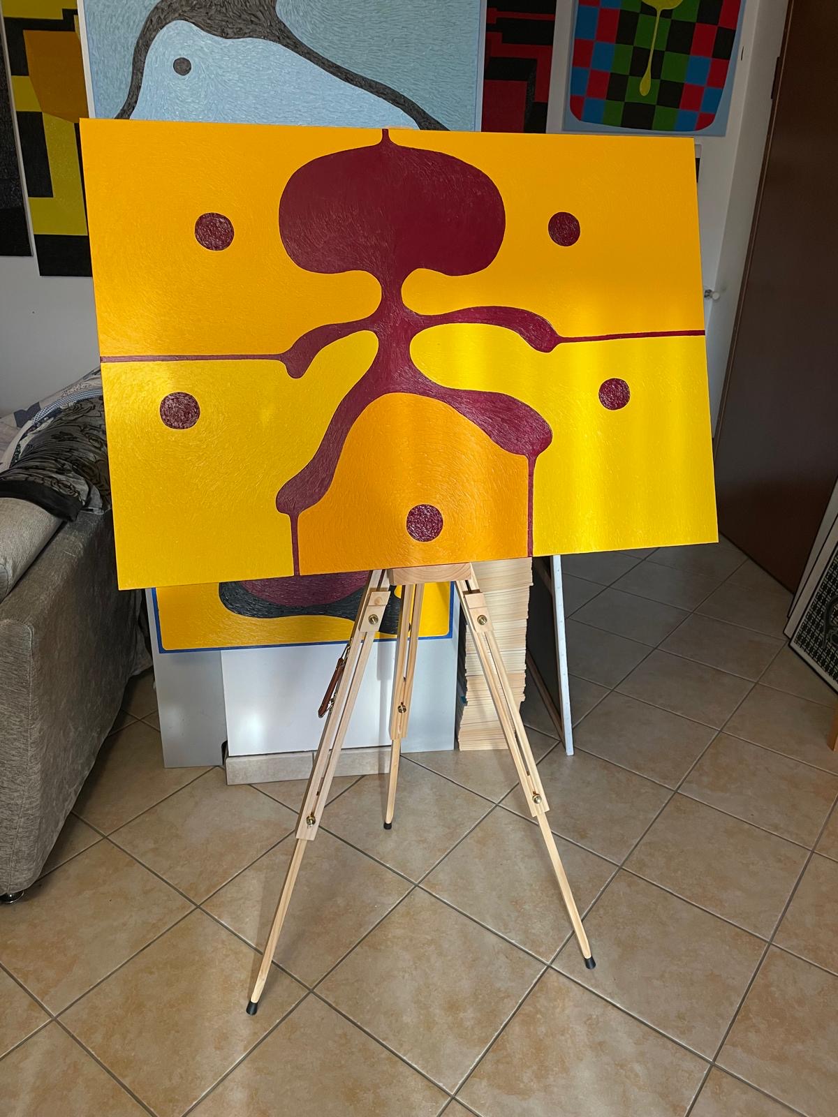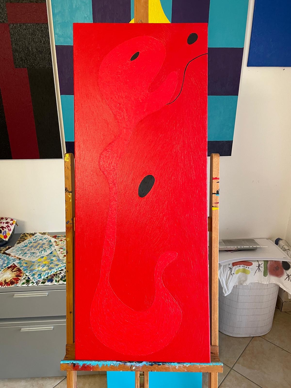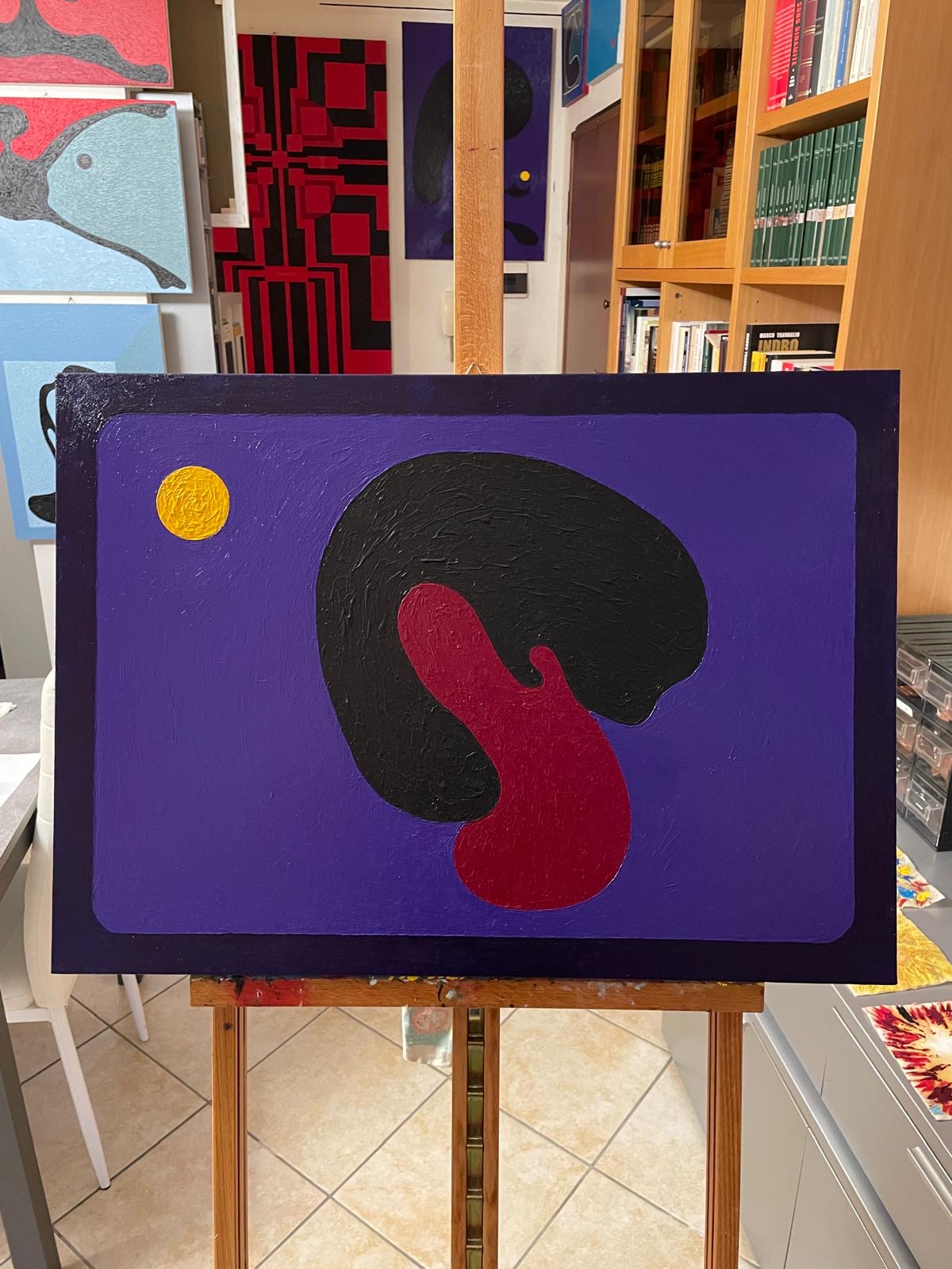 Nel tempo, da quei tratti sono nate creature multiformi, simboliche, visionarie. La mia pittura ha preso una direzione astratta, onirica, carica di simboli e suggestioni interiori. Le mie tele sono mondi intimi, costruiti con grumi di colore, intrecci geometrici e una gamma cromatica sempre in movimento. Nulla è lasciato al caso: ogni forma, ogni tinta, racconta una parte di me.